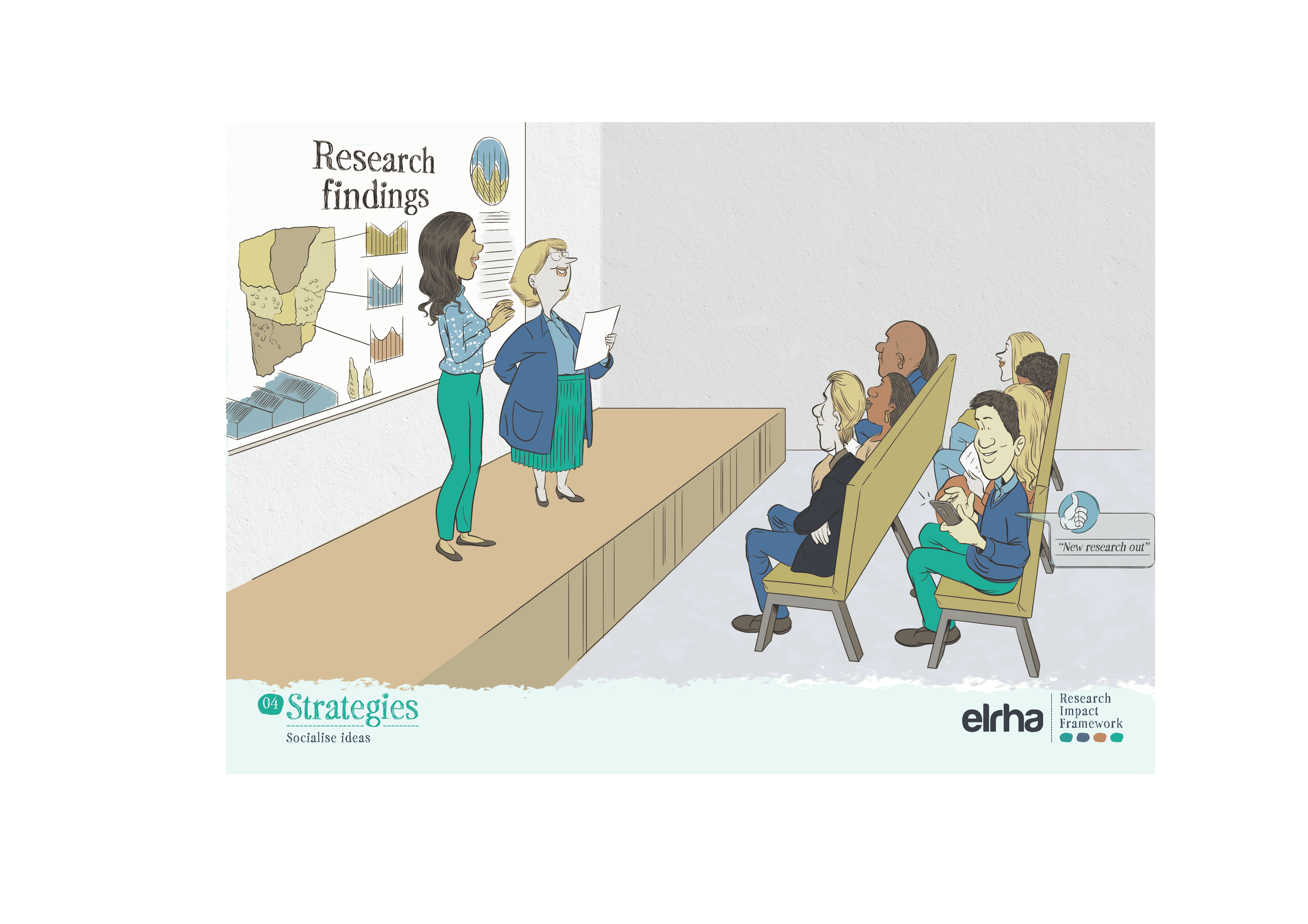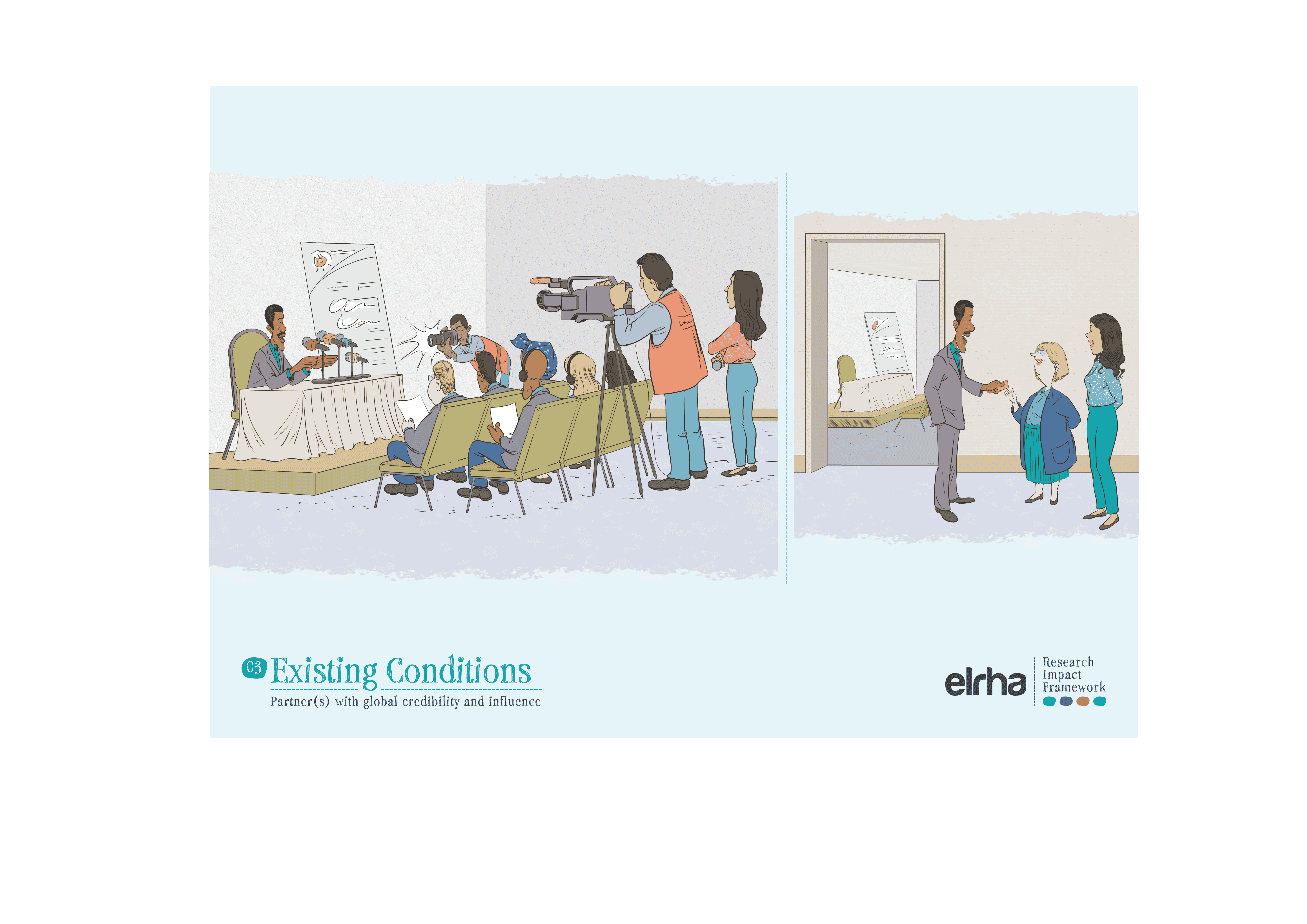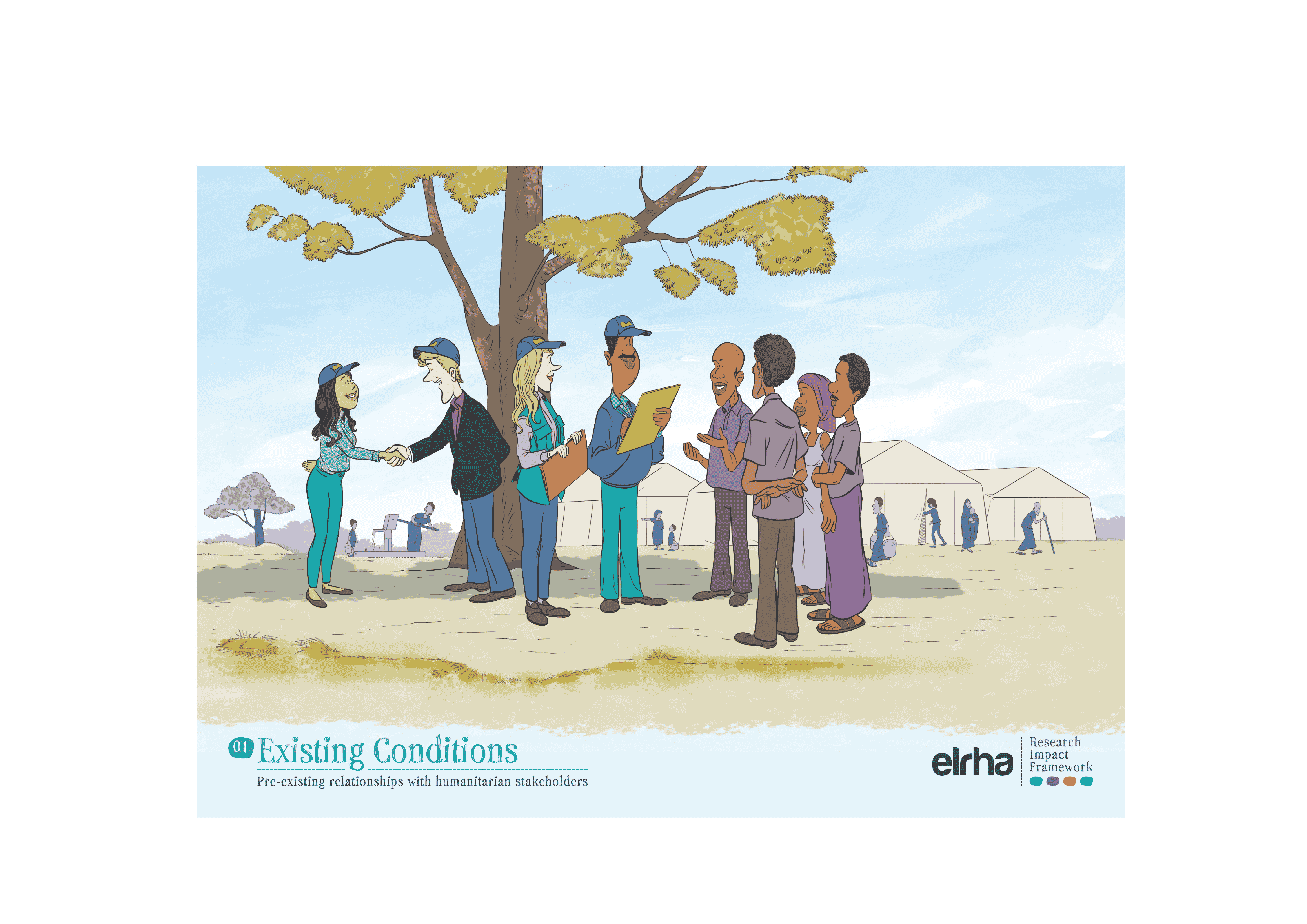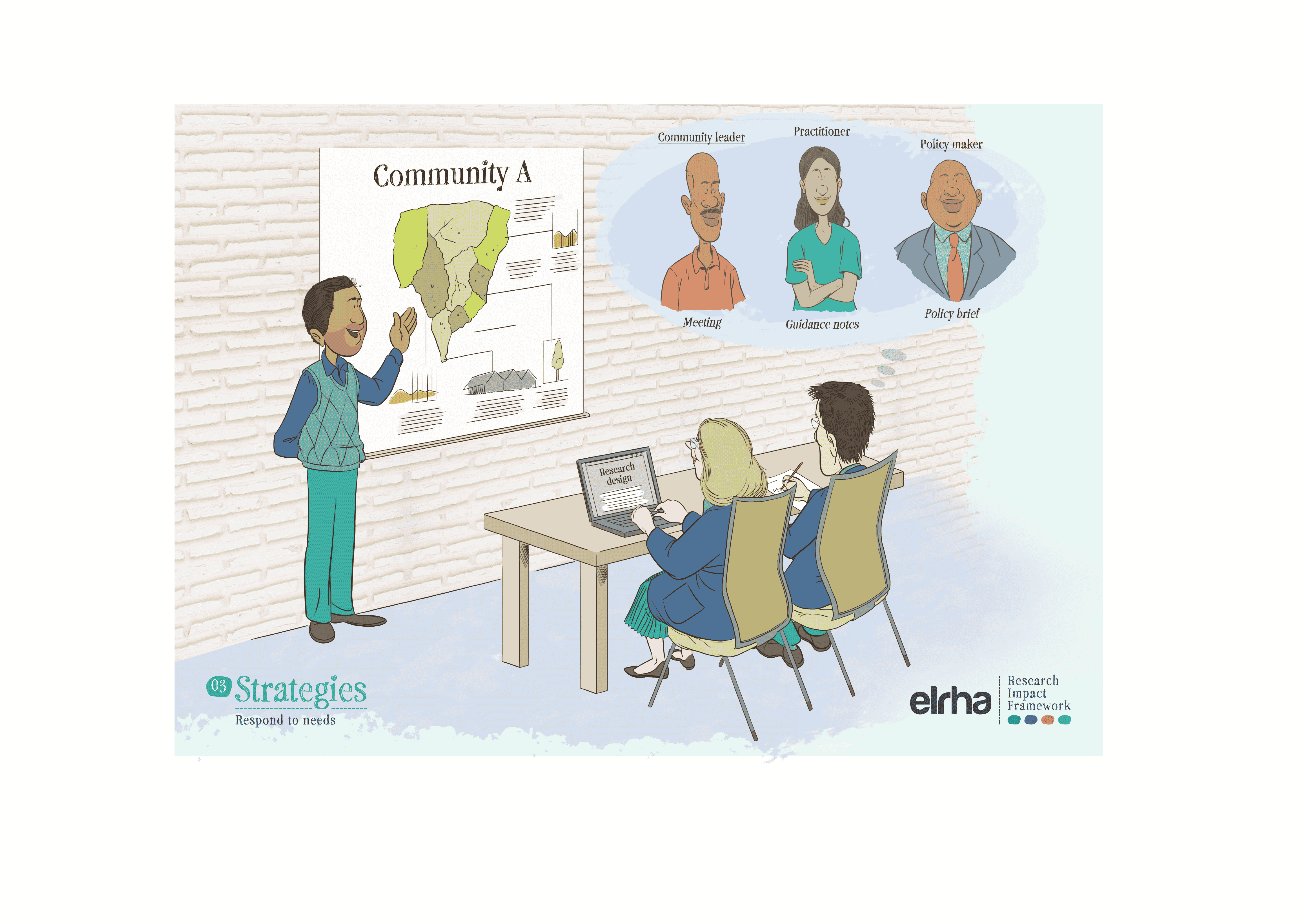 That is why a systems-focused resource like the Research Impact Framework benefited from illustration. The Framework provides guidance on how humanitarian health research can better influence policy and practice. It sets out five strategies and nine enabling conditions that shape impact. Useful, yes, but still abstract when presented only as text or a diagram. Ahead of the Research Forum in Nairobi in 2025, we worked with an East African illustrator to translate those strategies and enablers into a set of illustrated scenes. The choice of collaborator mattered. If “shifting the power” is a serious commitment, it has to show up not only in who gets invited to speak, but in whose visual language we use to explain the work.