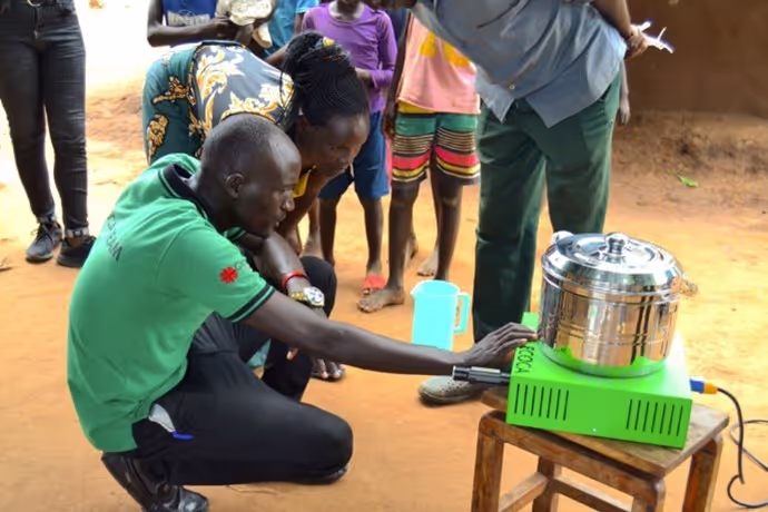 As an awardee of the Journey to Scale grant in 2020, one of our aims was to expand the local production facility and the team responsible for production, sales and distribution of the ECOCA solar electric cookstove in Lokopio, close to the Bidibidi Refugee Settlement in Uganda. The team in Lokopio are now assembling the ECOCA, conducting quality control, facilitating sales, delivering the product to customers' homes and providing point of sale training and support to customers.