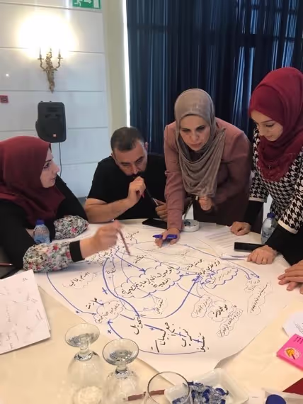 We then convened a participatory workshop with stakeholders in refugee health care in Jordan to explore means to improve community health approaches to non-communicable disease care in Jordan. We used a methodology called causal loop analysis, drawn from systems dynamics theory, which provides a means to understand complex systems. During a two-day workshop held in Amman from 24th to 25th June 2019, government and NGO leadership, patients, and health care providers including CHVs collaborated to produce a schematic of the primary health care system for refugees and to generate key variables within and the relationships between them. Based on these inputs and multiple key informant interviews, we generated a final causal loop diagram. This causal loop diagram identifies gaps in care, key barriers, and what key components might be included in a CHV program for management of diabetes and high blood pressure among Syrian refugees and vulnerable Jordanians in Jordan. The final causal loop diagram can be used to understand not only current relationships between variables but how those variables might interact over time. Causal loop diagrams may also help predict how a planned intervention might impact a community.