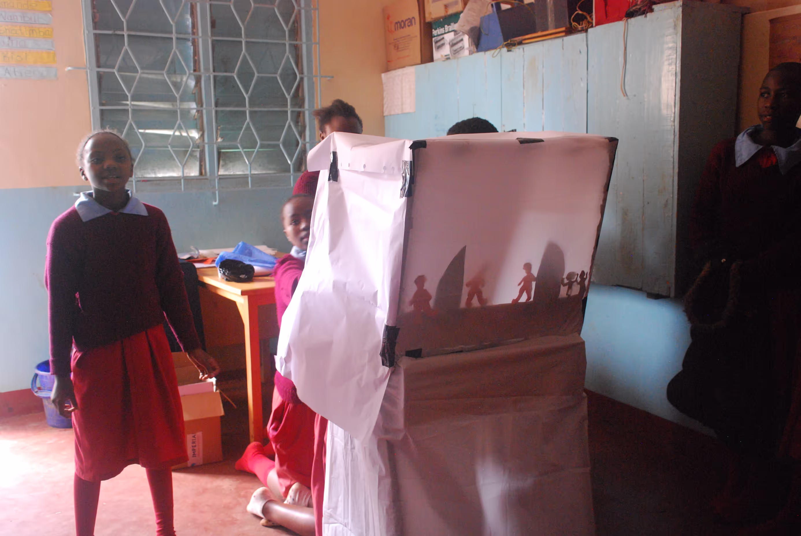 The second part of our innovation is a range of playful, storytelling tools that stimulate genuine participation, so that target group members interpret messages together using engaging puppetry techniques like shadow theatre, models, or making Mr Poop sock and Germ puppets.